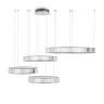 Металлическая арматура в цвете латунь и хром. Хрустальные декоративные кольца с геометричными гранями. LED-источник света. Регулировка цветовой температуры (3000-4000-5000K) и яркости 4G-dimming при помощи пульта (в комплекте).