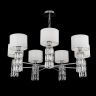 Арматура из металла, цвет – хром. Абажуры из текстиля, нанесенного на ПВХ. Цвет – белый. Декор – массивные кристаллы сложной огранки. Высота подвесных моделей регулируется.