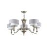 Металлическая арматура окрашена в цвет античного серебра. Двойные абажуры из хлопка на ПВХ, комбинация белого и серого цвета. Флористический декор. Высота люстр регулируетс