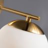 Арматура - металл, цвет - латунь. Мраморные черные элементы в основании. Плафоны-сферы из белого матового стекла с металлической апликацией у основания крепления в цвет арматуры. Сменямый источник света - лампы с цоколем Е27.