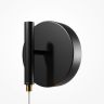Черная потолочная чаша дополнена финишным антибликовым покрытием sandy, декоративный элемент плафона выполнен из металла цвета сатинированной латуни. Сочетание двух фактурных стекол в плафоне: нижняя полусфера из матового белого стекла для создания мягкого рассеянного света, верхняя часть плафона - из тонированного янтарного стекла. Внутри установлен LED-модуль, создающий равномерное освещение, направленное вверх и вниз. Цветовая температура – 3000К, угол рассеивания — 120°.