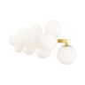 Металлическая арматура в четырех цветах: матовый черный, хром, золото, латунь. Плафоны — выдувное стекло. Цвета — дымчатый, янтарный, коньячный. Дизайн с имитацией молекулярной структуры. Высота подвесных светильников регулируется тросом. Лампа с цоколем G9.