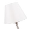 Металлическая арматура в двух оттенках на выбор: латунь и никель. Абажуры – текстиль белого цвета. Декоративные элементы из прозрачного стекла. Источник света – лампа с цоколем E14.