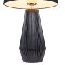Металлическая арматура, основание – полирезин с рельефной фактурой. Аба жур – хлопок, нанесенный на ПВХ. Два цветовых решения: белый и черный. Источник света - лампа с цоколем Е27.