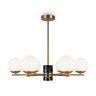 Арматура - металл, цвет - латунь. Мраморные черные элементы в основании. Плафоны-сферы из белого матового стекла с металлической апликацией у основания крепления в цвет арматуры. Сменямый источник света - лампы с цоколем Е27.