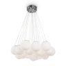 Материал арматуры — металл, цвет — хром/латунь. Подвесные светильники c цоколями E14/E27/G9. Белые стеклянные плафоны с рисунком в виде космических планет крепятся на тонких тросах, которые регулируются по высоте, создавая эффект парящих облаков.