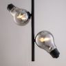 Металлическая арматура, цвета — чёрный и латунь. Прозрачные плафоны-лампочки из стекла в тон арматуры хаотично “разбросаны” по острову светильника. Подвесы регулируются по высоте. Источник света — лампа с цоколем G9.