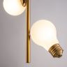 Металлическая арматура, цвета — чёрный и латунь. Прозрачные плафоны-лампочки из стекла в тон арматуры хаотично “разбросаны” по острову светильника. Подвесы регулируются по высоте. Источник света — лампа с цоколем G9.