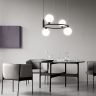 Арматура из металла в трех оттенках: белый, черный, латунь. Плафоны-сферы закреплены на округлом металлическом каркасе. Материал плафонов — выдувное стекло, цвет — белый. Высота подвесных моделей регулируется.