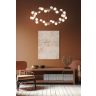 Арматура из металла в золотом цвете. Плафоны-сферы — белый пластик. Дизайн с имитацией молекулярной структуры. LED-источники света.