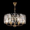 Арматура из металла, цвет – латунь. Декор – пластины из прозрачного стекла, инкрустированные в латунную основу. Источники света в форме свечей. Цоколь Е14.