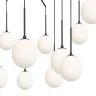 Металлическое основание, цвет - золото. Черная матовая арматура. Регулируемая высота плафонов за счет изменения длины проводов. Овальные плафоны из белого матового стекла с резьбой для удобной самостоятельной замены ламп. Цоколь G9. Лампы в комплект не входят.