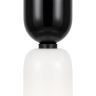 Металлическая арматура, цвет - черный. Светильники стилизованы под форму песочных часов с обтекаемой формой. Керамические элементы с глянцеовй глазурью. Подвесные светильники с плафонами из белой керамики с прозрачным, черно-белым, золото-белым и белым стеклом. Регулируемая высота подвесных светильников.