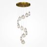 Материал арматуры - металл, цвет - латунь. Серия вдохновлена эстетикой северных лесов. Плафоны - литое цельное стекло в форме и фактуре среза дерева. Три варианта цвета плафонов: прозрачный; прозрачный + матовый; прозрачный + матовый + изумрудный. Эстетичные крепления и магнитная потолочная чаша без видимых болтов. Готовые композиции из 1, 5, 7 и 12 плафонов. Источник света - лампа с цоколем G4.