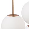 Материал арматуры – металл, цвет - золото, белый, черный. Округлые плафоны из матового белого стекла. Универсальные формы, минималистичный дизайн. Цоколь - E14. Лампы не входят в комплект. Регулируемая высота подвесных светильников.