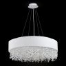 Металлическая арматура в белом цвете. Абажур – ткань, нанесенная на ПВХ, цвет – белый. Декор – подвески в виде граненых кристаллов. Высота подвесных светильников регулируется тросом.