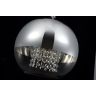 Арматура из металла в двух оттенках: никель и золото. Часть плафона выполнена из металла в тон арматуре, другая часть — из прозрачного стекла. Декоративные подвески внутри плафонов. Регулируемая высота.