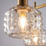 Металлическая арматура в цвете латунь. Плафоны из толстого рельефного стекла в оттенке амбра с «шипованной» огранкой. Подвесные модели регулируется по высоте. Источник света - лампа с цоколем Е14