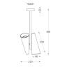 Металлическая арматура в двух оттенках: белый и черный. Плафоны-конусы выполнены из алюминия. Оттенки: белый, латунь. Рожки вращаются, можно менять направление света. Высота регулируется с помощью разборного центрального элемента.