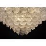 Материал арматуры – металл, цвет – золото. Фактурный декор из прозрачного стекла. Округлые подвески с рельефным узором скрывают источники света – лампы с цоколем Е14.