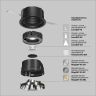 Встроенный утопленный источник света LED, обеспечивает мягкое рассеивание света. Поворотный механизм, позволит организовать акцентную подсветку зон и предметов интерьера. Сменные линзы и фильтры позволят изменить стандартный угол 36° на выбор от 15°-50° и сделать освещение более комфортным. Сменные рефлекторы в ассортименте, позволят подобрать цветовую гамму для большинства трендовых интерьеров.